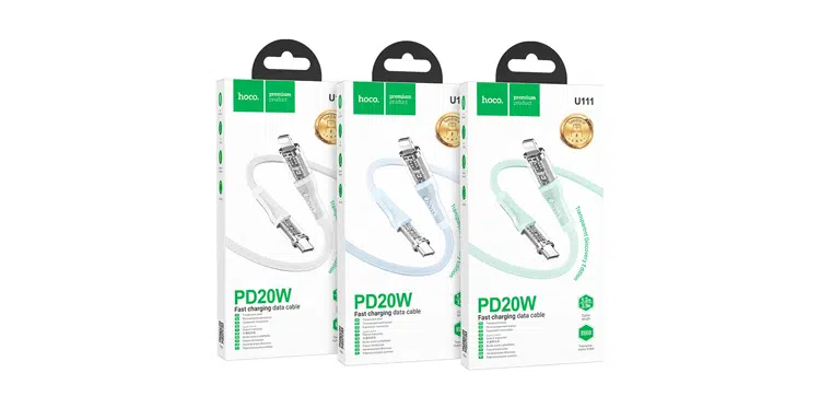 U111 Transparent Discovery Edition, Type-C to Lightning charging data cable, 1.2m, transparent plastic and two-color braid, support PD 20W fast charge.