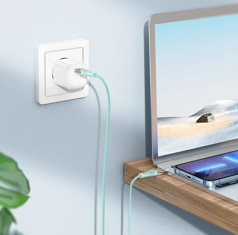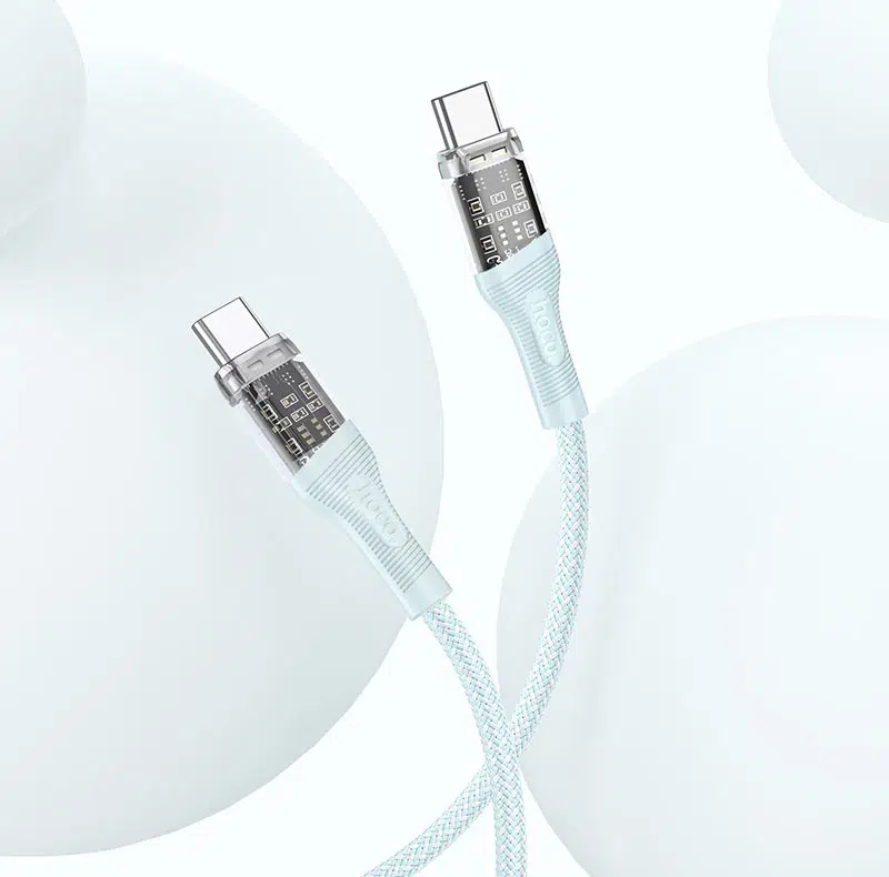 U111 Transparent Discovery Edition, Type-C to Type-C charging data cable, 1.2m, transparent plastic and two-color braid, supports 60W (20V / 3A) for laptops and 3A for mobile phones.